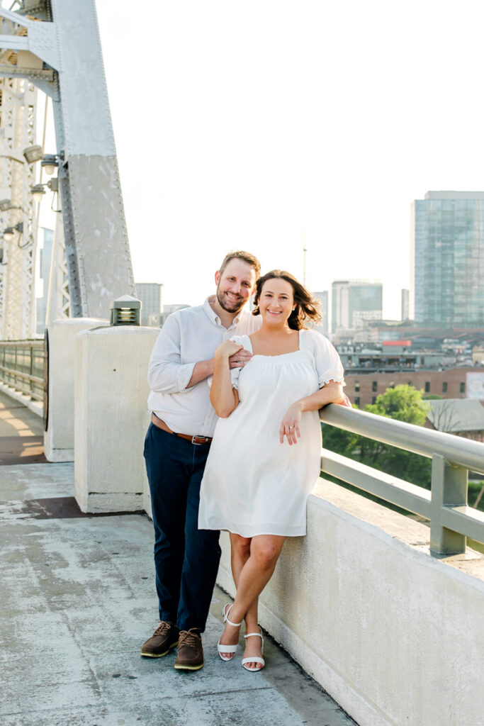 The bridge offers stunning views of the Nashville skyline and the Cumberland River, giving your photos a mix of natural beauty and urban elegance. I particularly love scheduling sessions around sunrise or sunset. The soft, golden light adds warmth and romance to every shot.
