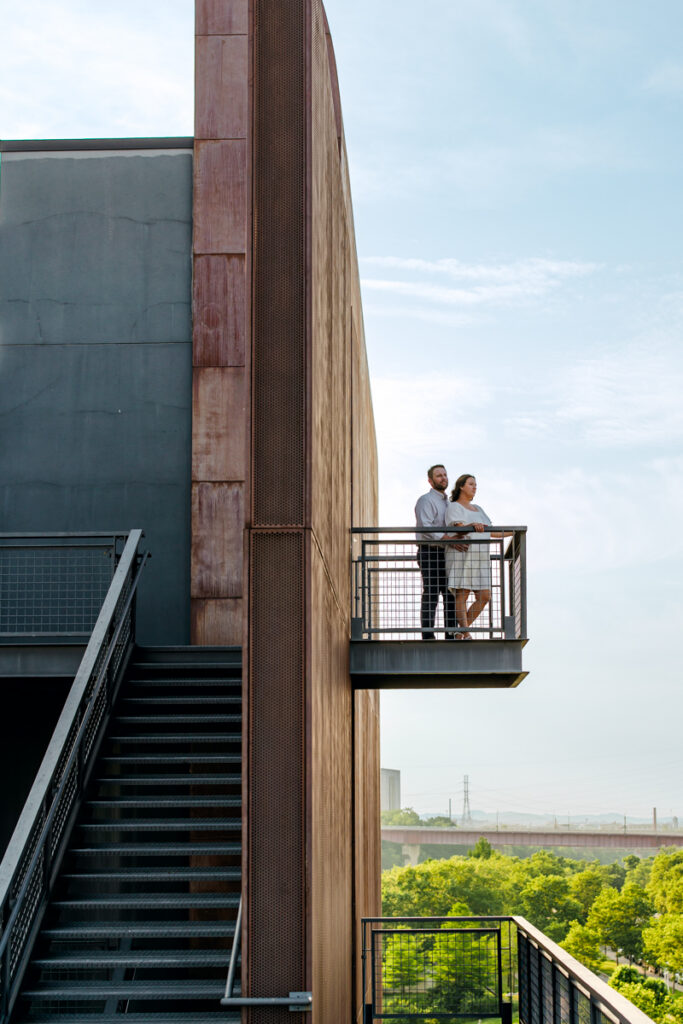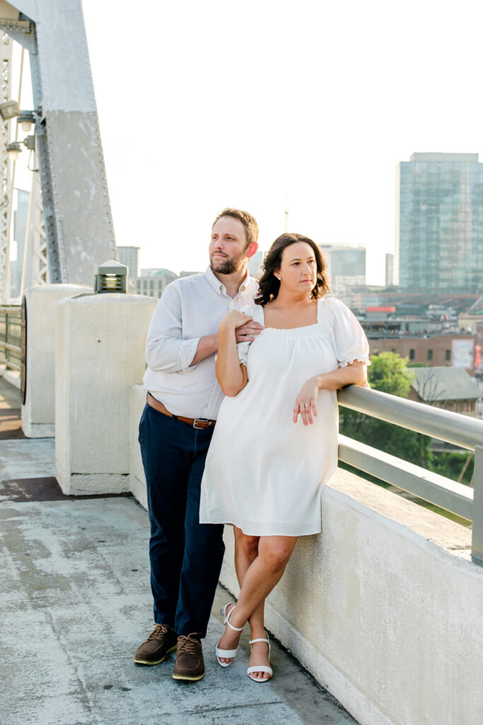 Beyond the skyline, the bridge itself provides countless creative opportunities. You can capture candid moments while walking hand-in-hand across the span and playful poses along the railings. There is also the opportunity for dramatic wide shots that showcase the bridge’s architecture and the city around you. Its elevated position also allows for unique perspectives that few other locations in Nashville can offer.