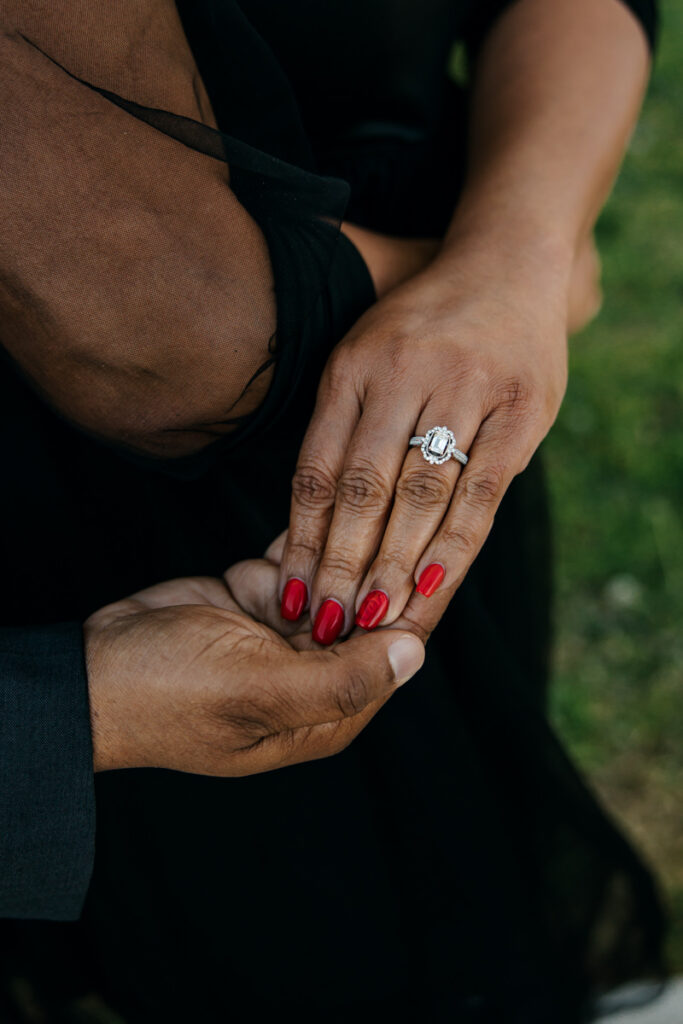 With their wedding less than two months away, it was such a treat to meet them in person. Gisele and Columbus met through a mutual friend in October 2022. In March 2024, Columbus put his proposal plan into action: He arranged for them to get dressed up and take couples photos at the Gaylord Opryland Resort and Convention and surprised her with a ring later evening.